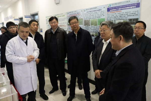 在農(nóng)業(yè)樓二樓,調(diào)研組聽取了蘇打鹽堿地改良技術(shù)的最新進(jìn)展匯報(bào)。研究人員詳細(xì)介紹了土壤改良劑研發(fā)、耐鹽堿作物篩選及生態(tài)修復(fù)工程實(shí)施成效,重點(diǎn)展示“以稻治堿”“以草治堿”等技術(shù)的創(chuàng)新應(yīng)用與規(guī)模化推廣成果。孫東生強(qiáng)調(diào)要加快技術(shù)標(biāo)準(zhǔn)化進(jìn)程,為鹽堿地資源高效利用提供科技支撐。
